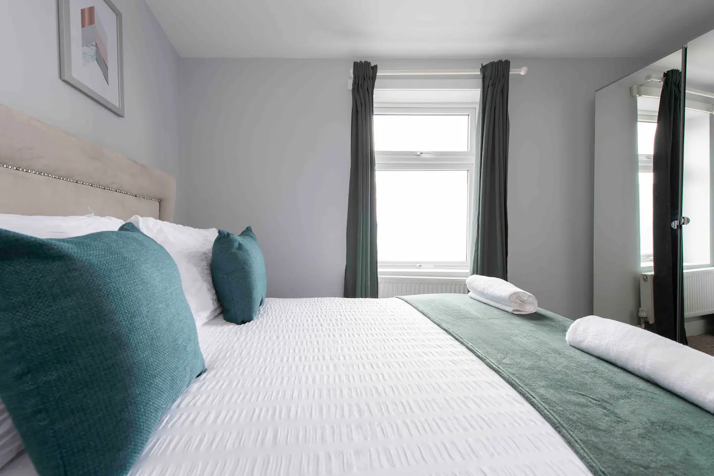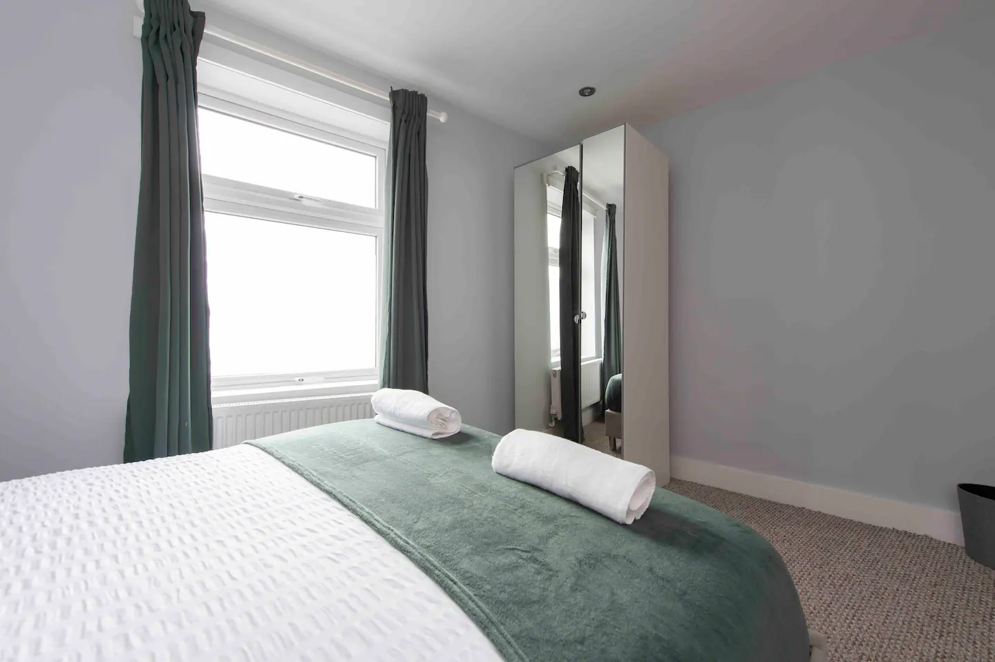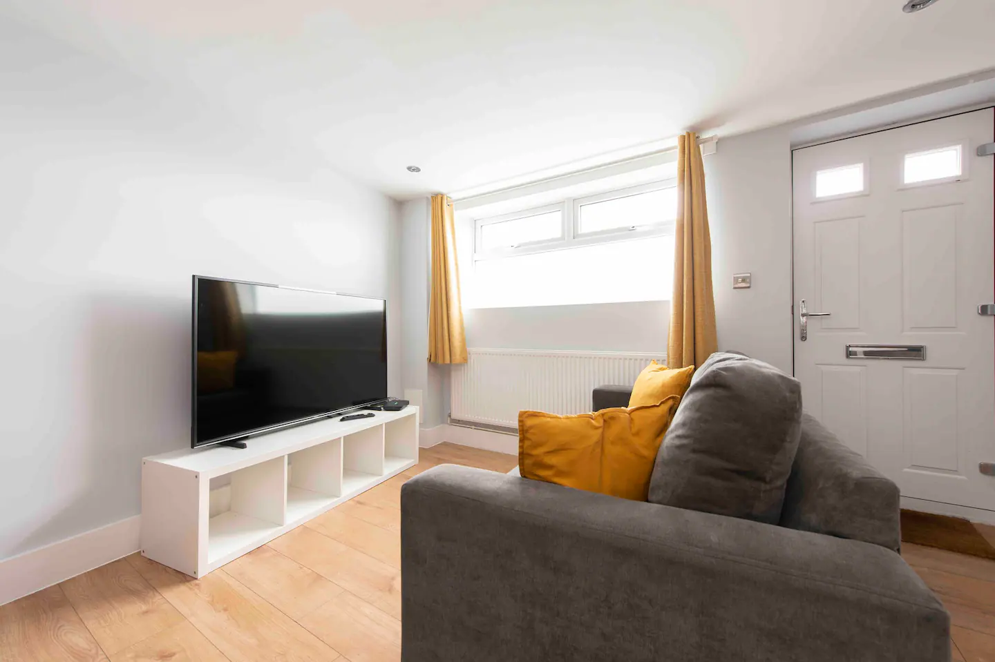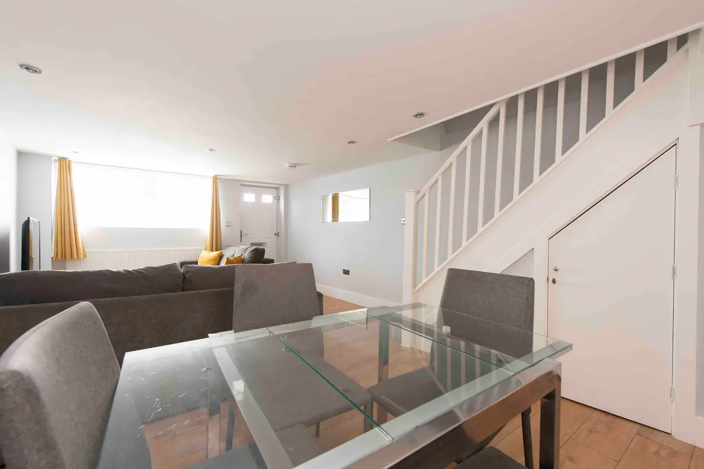 Enjoy a stylish experience at this centrally-located 2 Bedroom House with 4 separate beds, 2 sofa beds in the living room, 1 double and a single bed with a 58inch smart Tv with Netflix/YouTube/Amazon Prime.