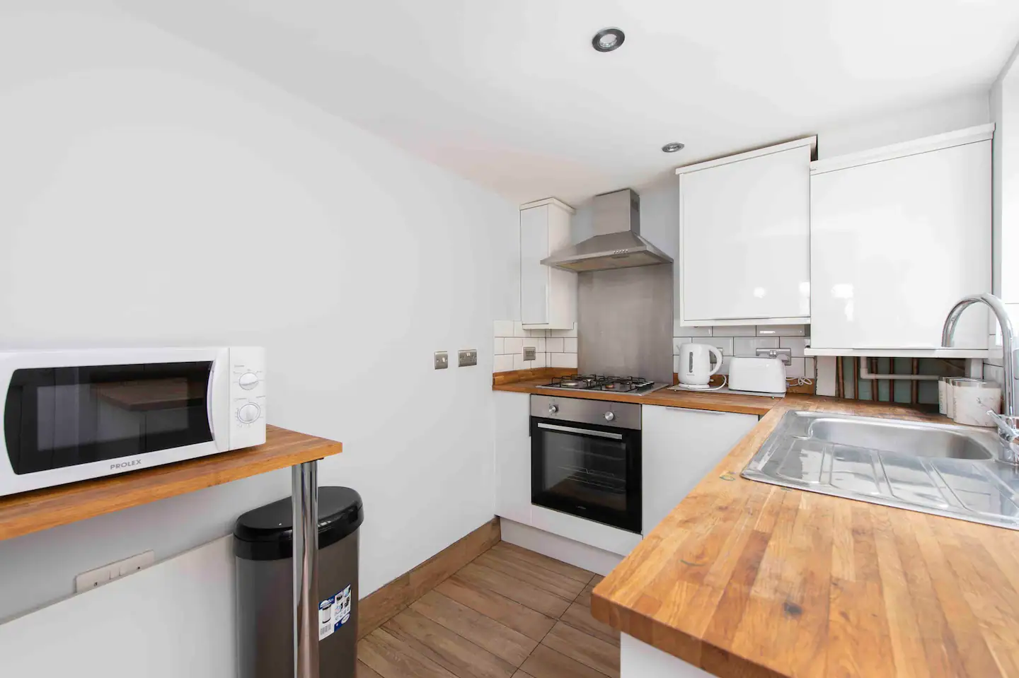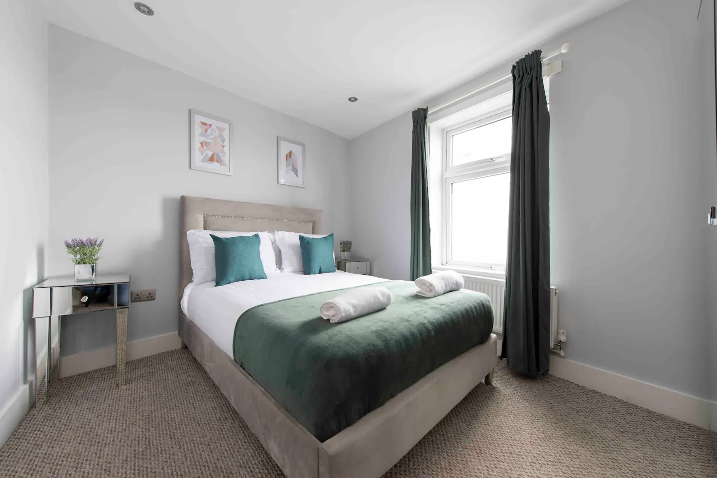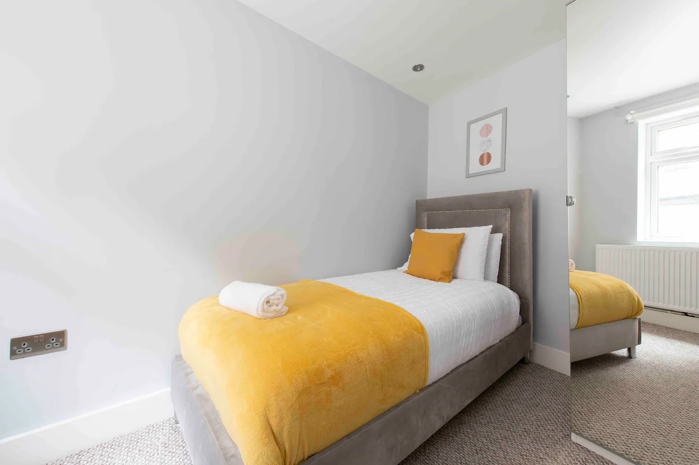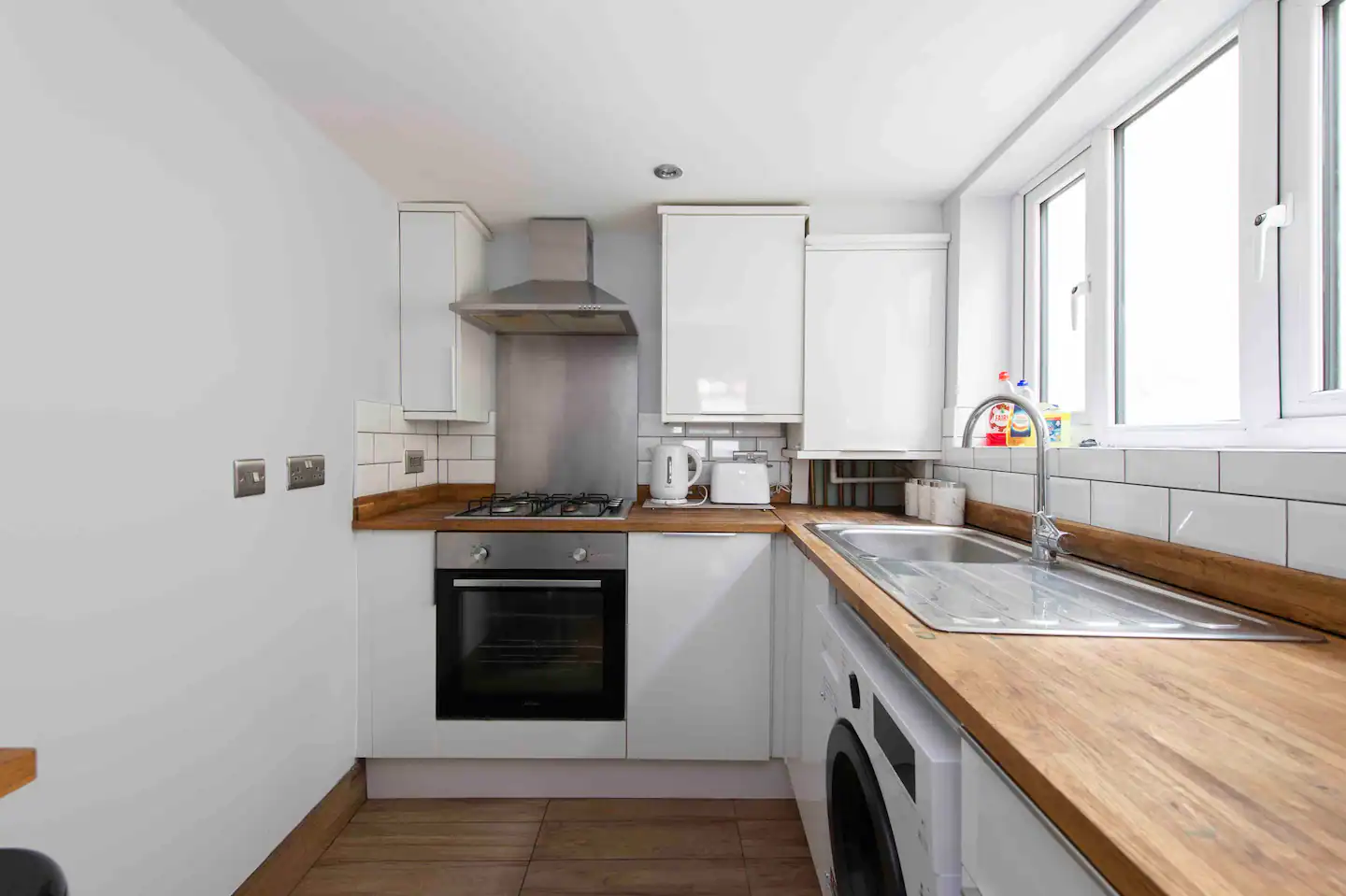 Enjoy a stylish experience at this centrally-located 2 Bedroom House with 4 separate beds, 2 sofa beds in the living room, 1 double and a single bed with a 58inch smart Tv with Netflix/YouTube/Amazon Prime.