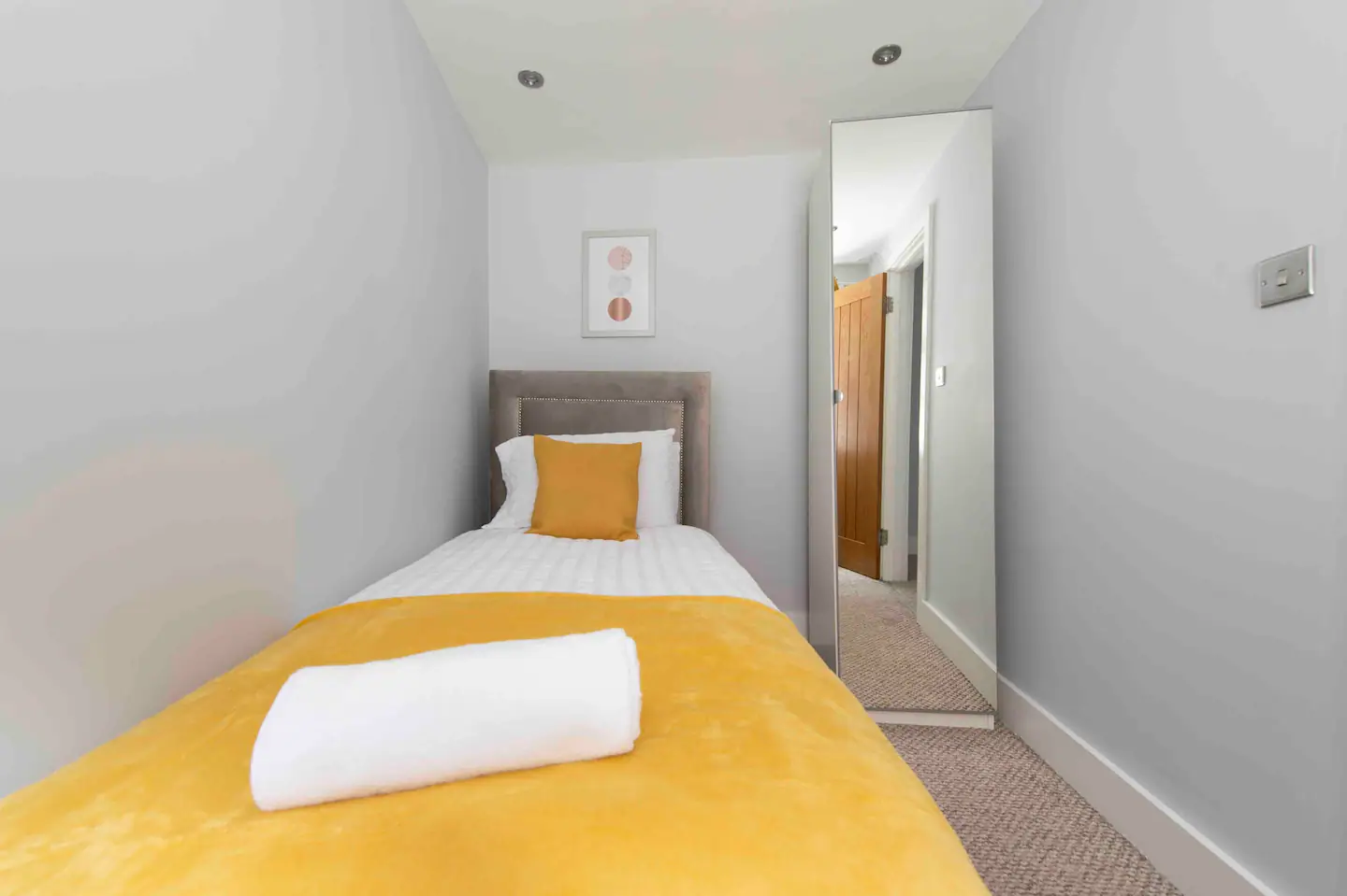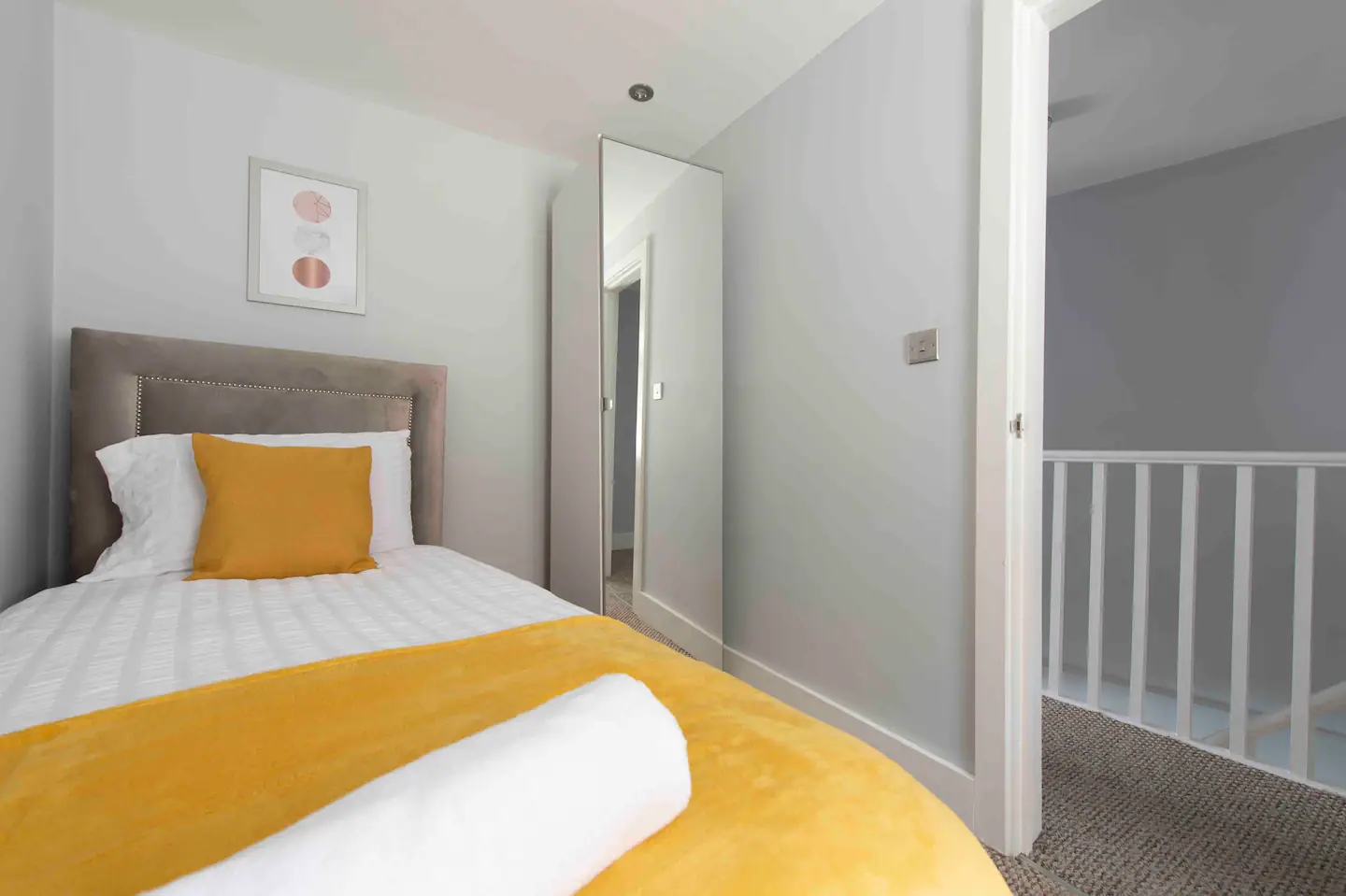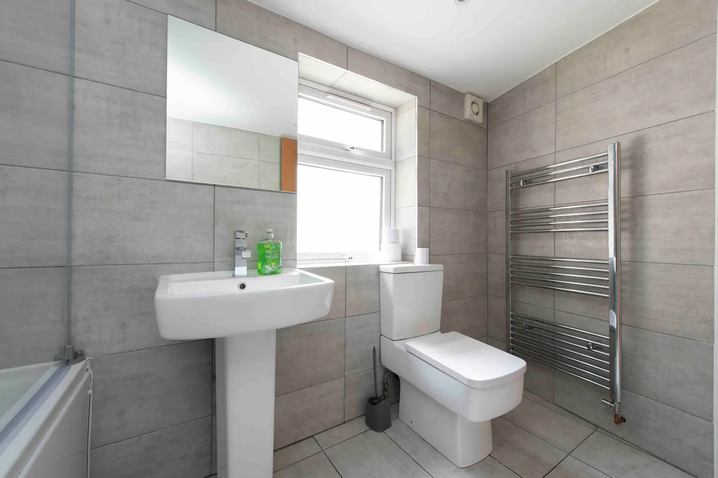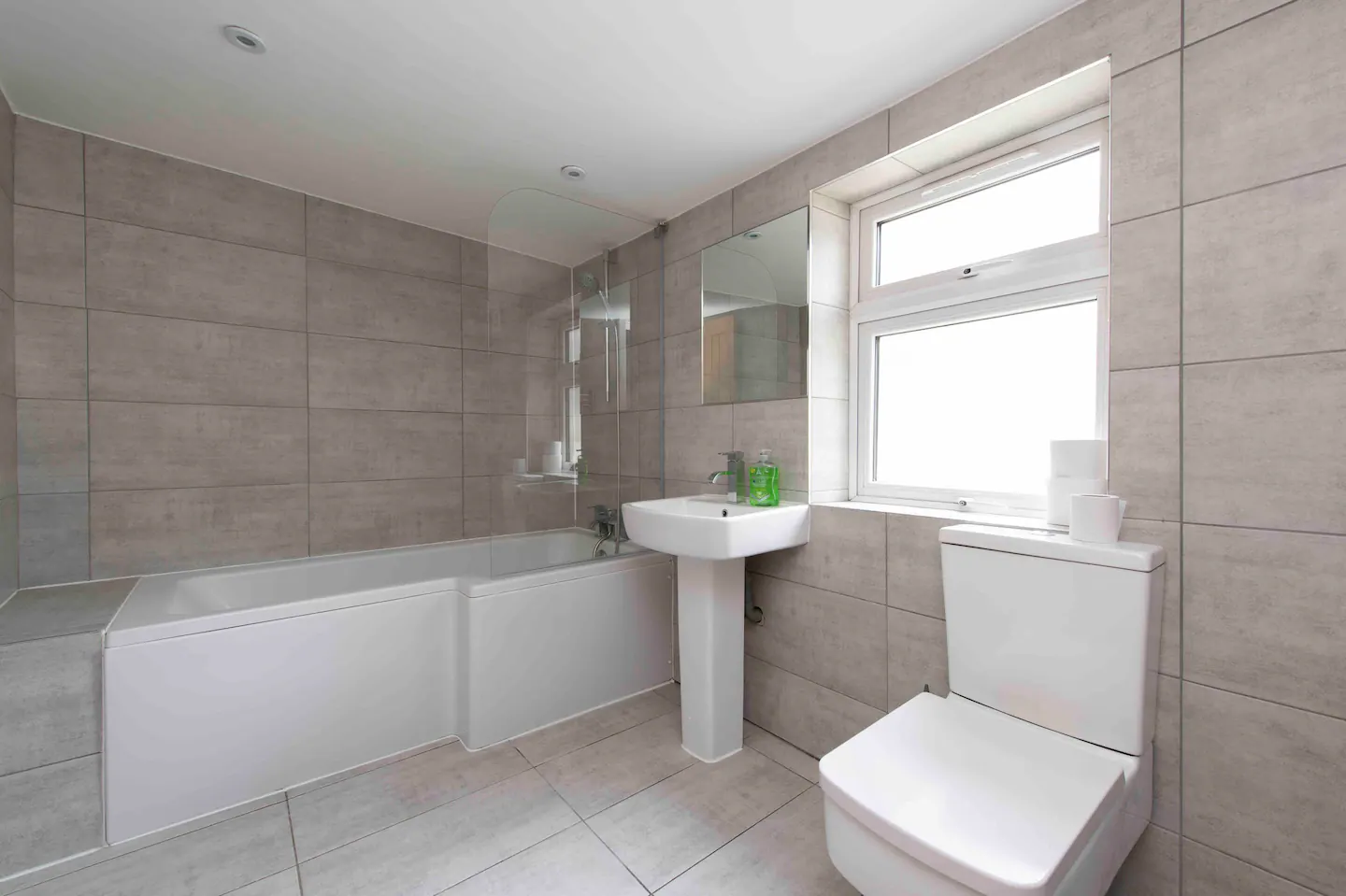 Enjoy a stylish experience at this centrally-located 2 Bedroom House with 4 separate beds, 2 sofa beds in the living room, 1 double and a single bed with a 58inch smart Tv with Netflix/YouTube/Amazon Prime.