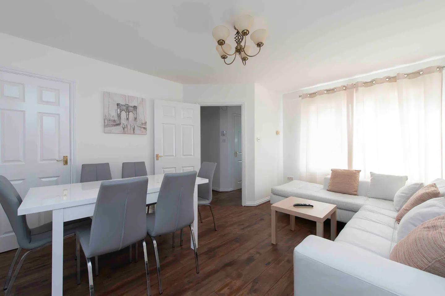 Lovely and well decorated 4 bed house with 6 separate beds and sleeps 8. Comes with a 55 inch smart Tv with NETFLIX/YOUTUBE/AMAZON PRIME. Beautiful garden and off street parking, with also street free parking for more free car park. Located between woolwich and thamesmead. Very close to Woolwich town centre. Minutes walk to station.
